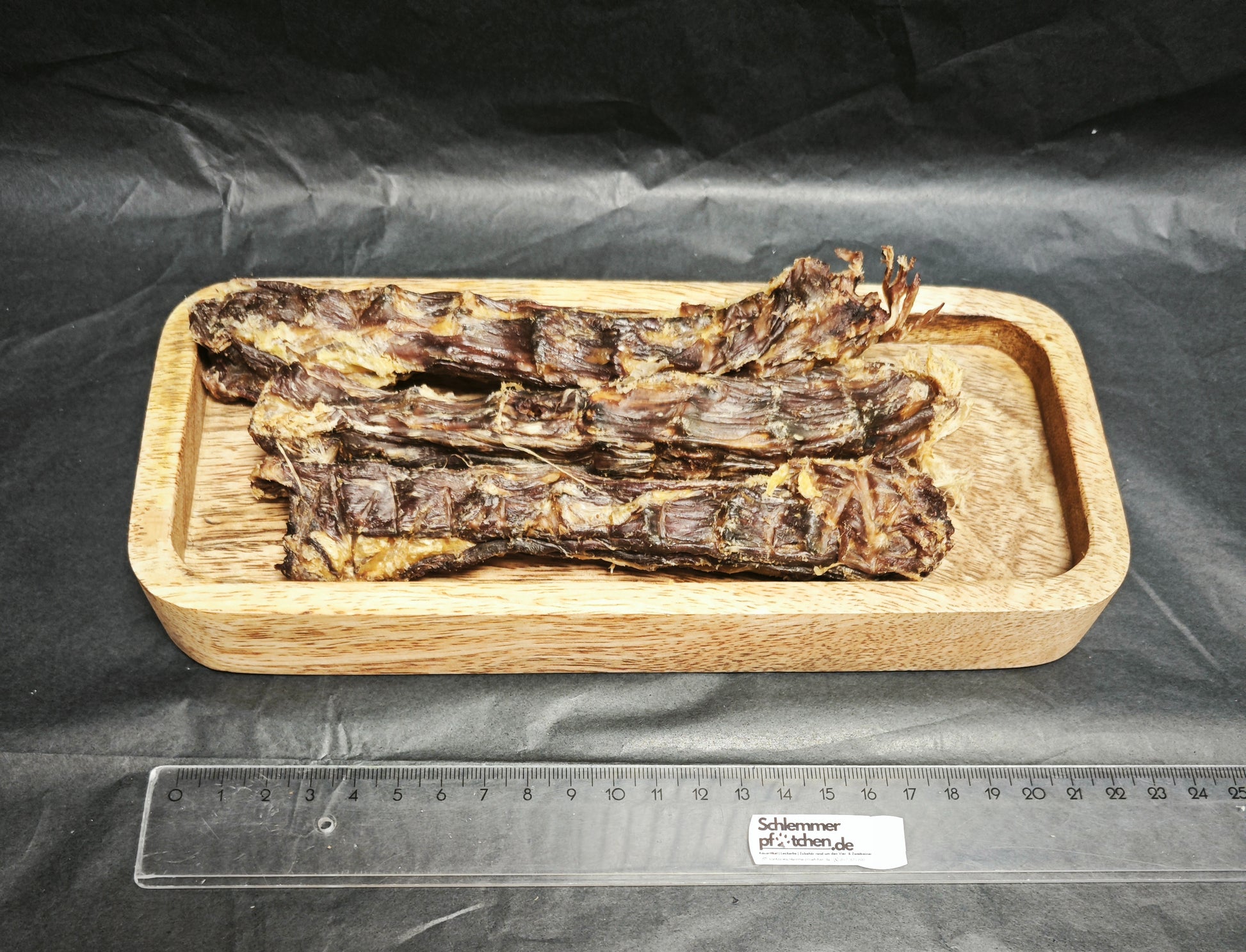 Our dried duck necks are made from 100% duck and are gently dried without preservatives or artificial additives. They offer a natural, juicy chew snack , which is particularly popular with many dogs due to its more intense smell.