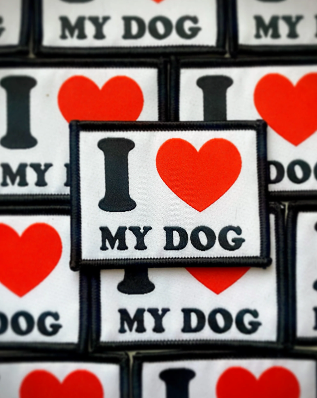 Iron-on patch with black overlock edge. Size: 60mm x 45mm