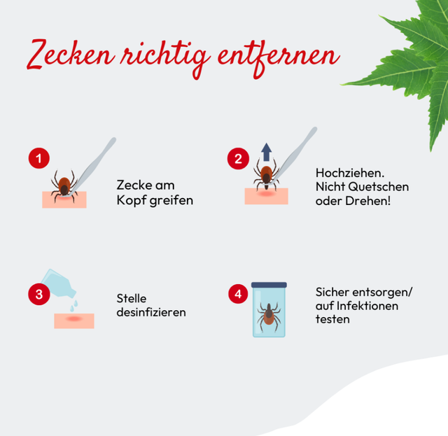 - Application: Remove ticks as early as possible, without oil or glue
